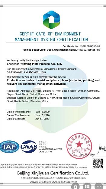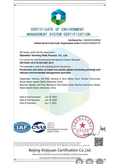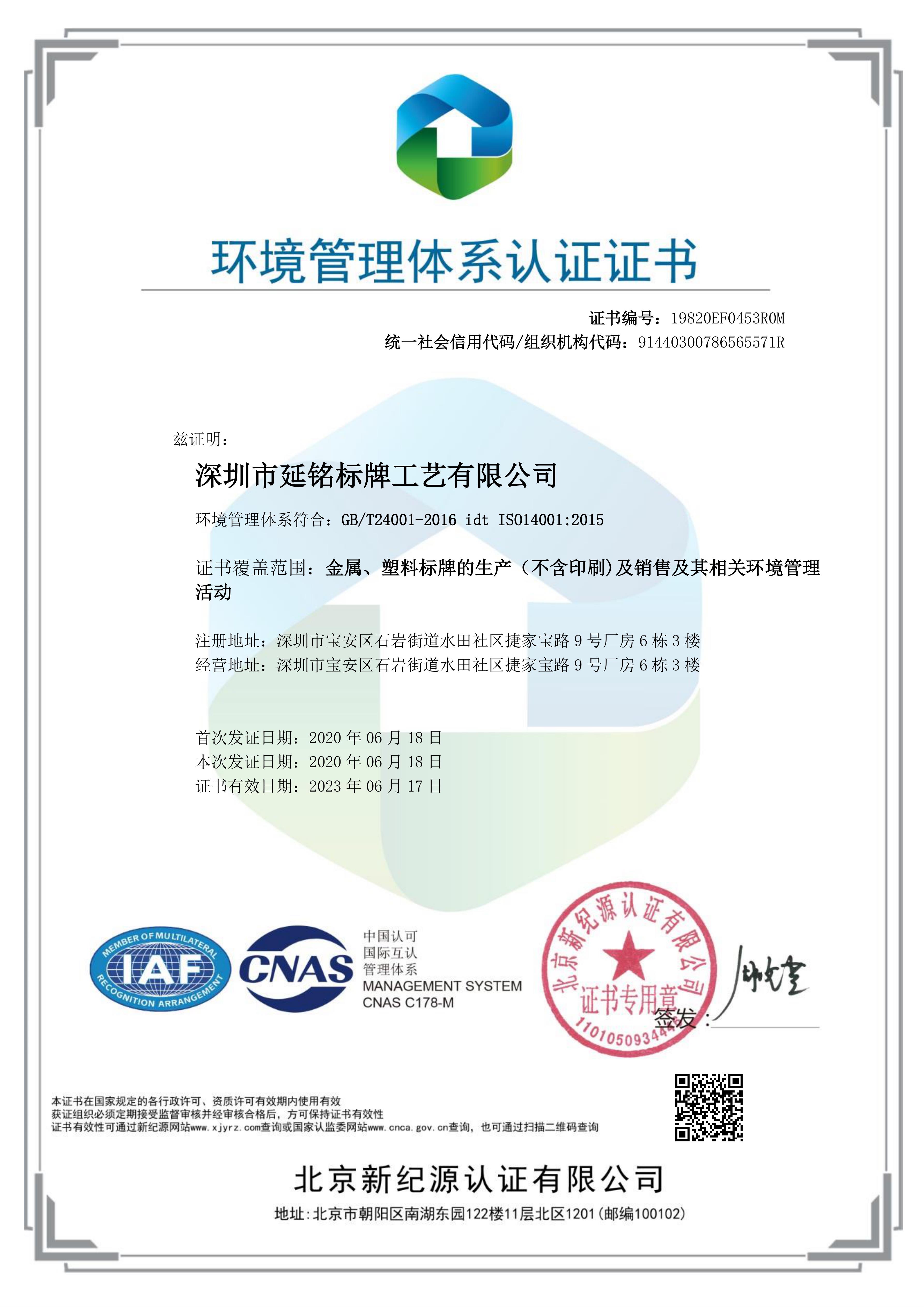 環境管理體系認證證書